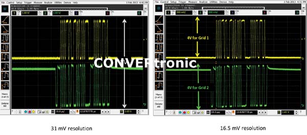 Actualmente hay en el mercado varios osciloscopios que ofrecen más de 8 bits de resolución. ¿Qué valor aportan esos bits extra? Siempre y cuando se disponga de una relación señal-ruido (SNR) suficiente, cuanto mayor sea el número de bits del convertidor de analógico a digital (ADC), más pequeños serán los detalles de la señal que podrán verse. El ruido suele ser uno de los principales factores a los que se atribuye la limitación de la efectividad de los bits de resolución adicionales.