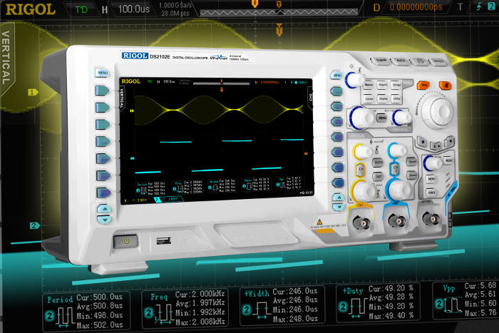 Con anchos de banda de 100 MHz y 200 MHz, velocidades de muestreo de hasta 1GS/s por canal y dos canales analógicos, la serie DS2000E resulta ideal para muchas áreas de aplicación, como investigación y desarrollo, universidades y escuelas, producción y desarrollo, así como para los mercados de comunicaciones, aeroespacial, electrónica industrial y muchos otros.