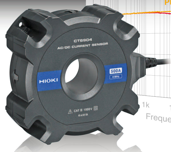 El nuevo sensor de corriente 500A, 4MHz, HIOKI CT6904 AC / DC ofrece: