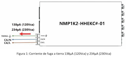 Se observa que la corriente de fuga a tierra del NMP1K2-HHEKC # -01 es de 234μA a 230Vca, que es mucho menor que la corriente de fuga a tierra total de 856μA de las cuatro fuentes de alimentación MSP. Por lo tanto, la corriente de fuga NMP1K2-HHEKC # -01 cumple con el requisito de corriente de fuga de 500μA - 750μA del equipo eléctrico de consumo.