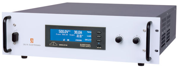 Estas fuentes programables permiten trabajar tanto como fuente de alimentación como de carga electrónica. La energía absorbida como carga electrónica se devuelve a la red con una eficiencia del 96% y un factor de potencia de 0,998. La serie SM15K está concebida como equipos modulares que permiten llegar hasta 900KW con las mismas prestaciones que si fuera un solo equipo.