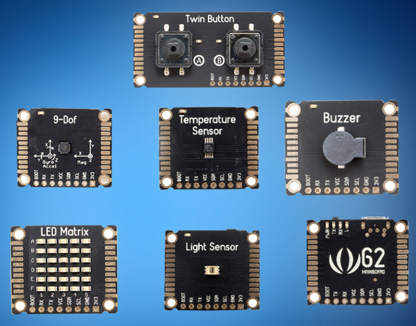 El kit Seeed Studio Grove Zero es una colección de módulos plug-and-play, cada uno con un microcontrolador preconfigurado con código. Los módulos están codificados por colores según la función, como la entrada del sensor o la salida del LED, y se unen mediante conectores magnéticos que permiten a los estudiantes conectar los módulos sin preocuparse por el orden o la dirección. Los módulos también cuentan con pastillas de separación de 2,54 mm para usuarios avanzados o estudiantes listos para aprender cómo soldar y construir circuitos simples.