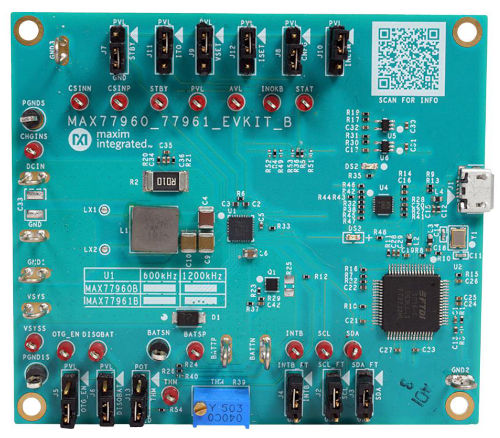 La misma necesidad de alta integración con pocos componentes pasivos es válida para los convertidores CC/CC que se usarán para acondicionar la alimentación y transmitirla a los distintos dispositivos del sistema, con sus requisitos concretos de tensión y corriente. El gran número de carriles de alimentación necesarios, incluso en dispositivos portátiles comparativamente pequeños, desde los 1 V de un sistema en un chip (SoC) digital hasta los 12 V o más para las E/S analógicas, da más valor a las soluciones compactas. Al usar menos componentes pasivos externos y reducir las pérdidas de conversión, el circuito del cargador y el regulador pueden ser más pequeños y funcionar sin disipadores de calor voluminosos en los transistores de potencia, ofreciendo así diseños de sistemas compactos y eficientes. Una de las formas en las que los MAX77960B y MAX77961B ayudan a mejorar la densidad es actuando como convertidores reductores y como cargadores: suministrando energía al sistema portátil siempre que la tensión alimentada por la batería sea superior a la tensión de salida deseada.